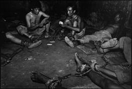 Yet brute everydayness is the order of the day. Everyday life continues even here. Even in the most brutal of conditions. Even in chains. It is this continuance of life that shocks us in the squalor of the existences it presents, of the filth of the daily routine, the degradation of supervision and the absence of privacy. This simply-stated matter of factness (the true essence of a documentary image) disturbs beyond the reach of individual moments of suffering, disturbs through sheer facticity, and so appalls by its very normalcy; a dull routine compounded by the desire to live on… regardless of situation, the manner of the passing of days. (And it is just this, the everyday desire to live, to continue, which, just perhaps, constitutes the trace of hope in these images…).